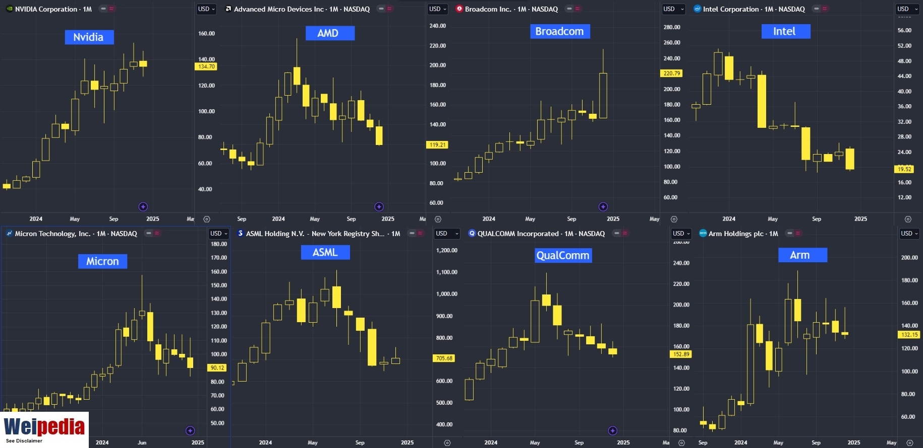 In 2021, the spotlight was on the electric vehicle sector, attracting significant interest from investors. The following year, as inflation soared to 9%, attention shifted to the energy sector. The introduction of ChatGPT at the end of 2022 ushered in 2023 as the year of AI-related stocks—a trend that has persisted into 2024. Forecasts for 2025 suggest that technology stocks will continue to dominate. However, the charts below reveal an uneven rally when assessing performance since the start of the year.